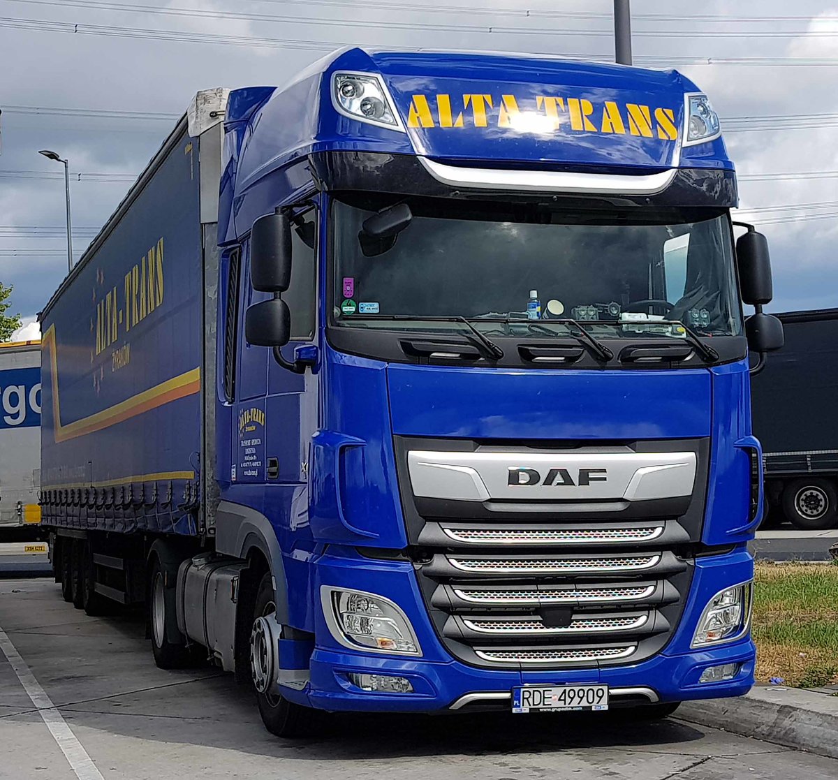 =DAF XF von ALTA TRANS steht im August 2020 auf einem Rastplatz an der A 3