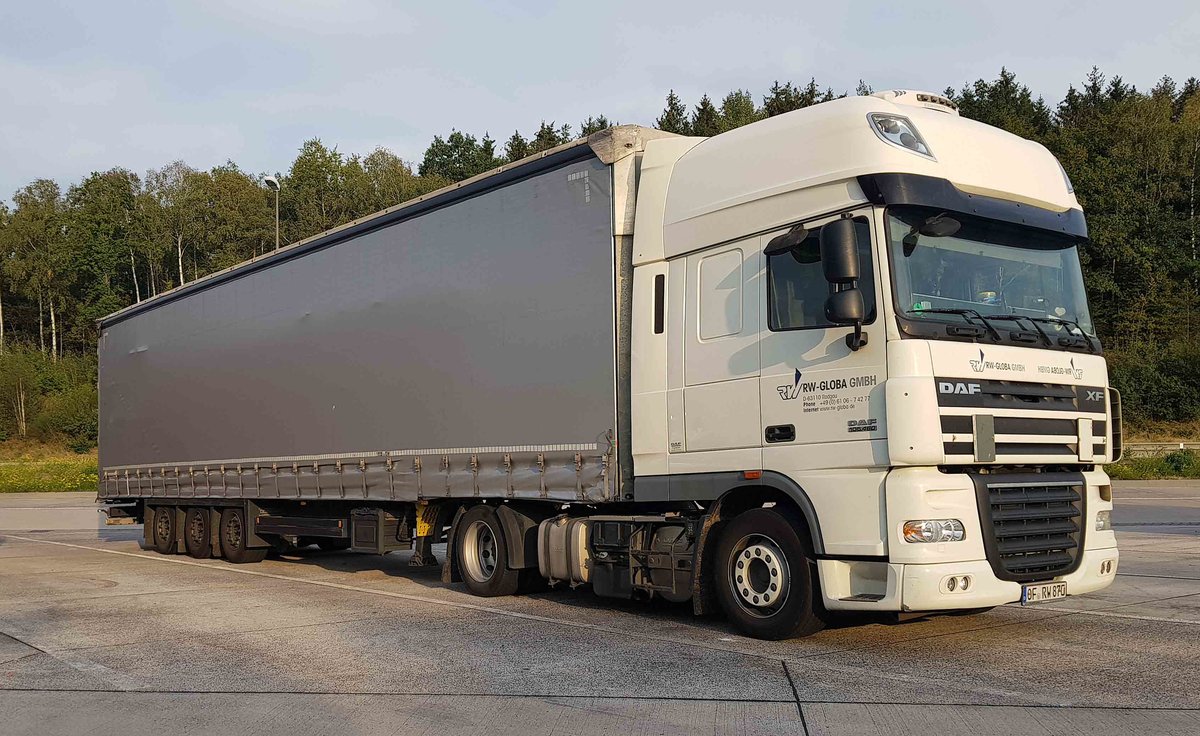 =DAF XF-Sattelzug von RW-GLOBA rastet im September 2020 an der A 7