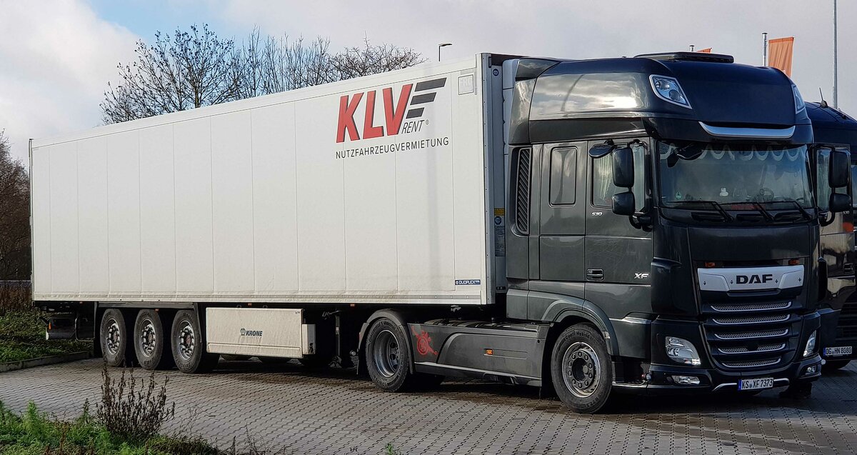 =DAF XF mit einem Sattelauflieger von KVL-Rent rastet im November 2021 an der A 7