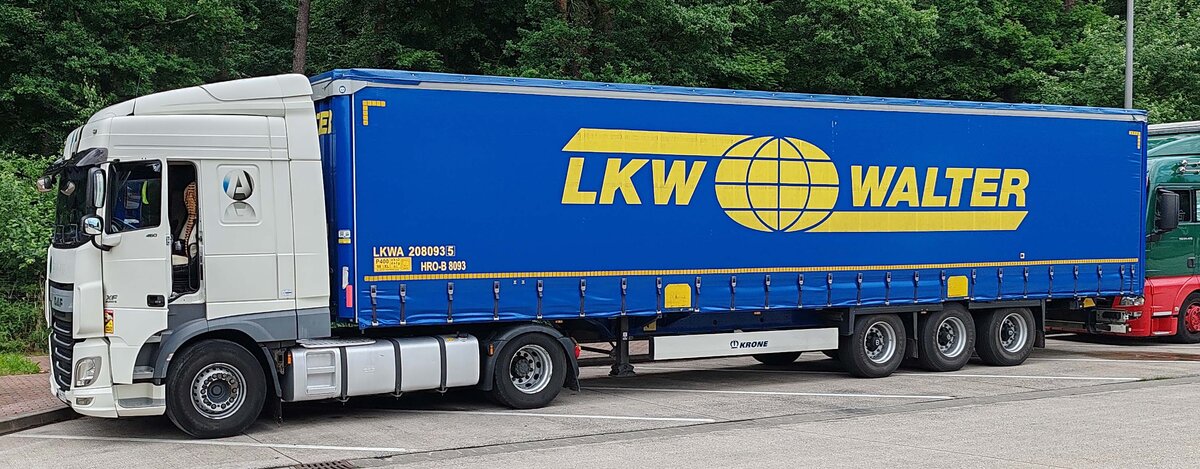 =DAF XF-Sattelzug der Firma SOUS FRESH steht zur Fahrerpause auf einem Rastplatz an der A 7, 06-2022