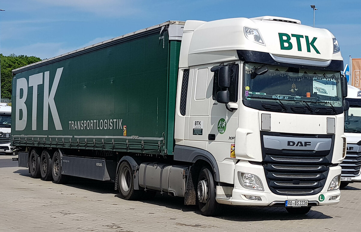 =DAF XF des Logistikunternehmens BTK rastet an der A 7 im Juni 2023