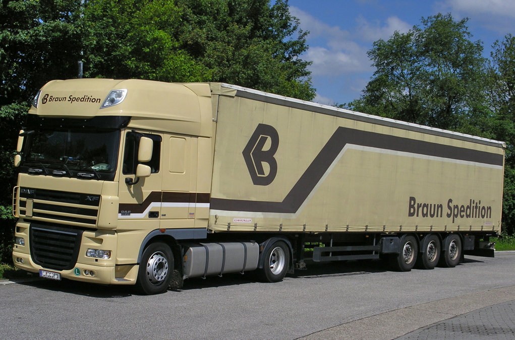 ..ein DAF - XF der Spedition Braun mit Planenauflieger an der A 45 -