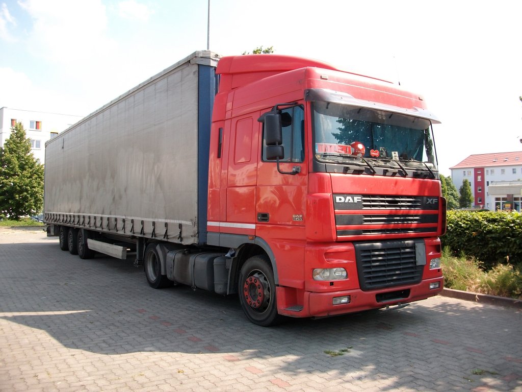 Rumänischer DAF-Sattelzug auf einem Parkplatz in Güstrow.