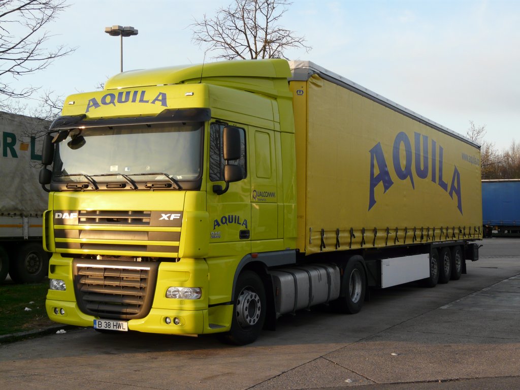 DAF XF 105.410 von "Aquila" aus Rumänien auf der Rastanlage Frankenhöhe, 08.04.2012