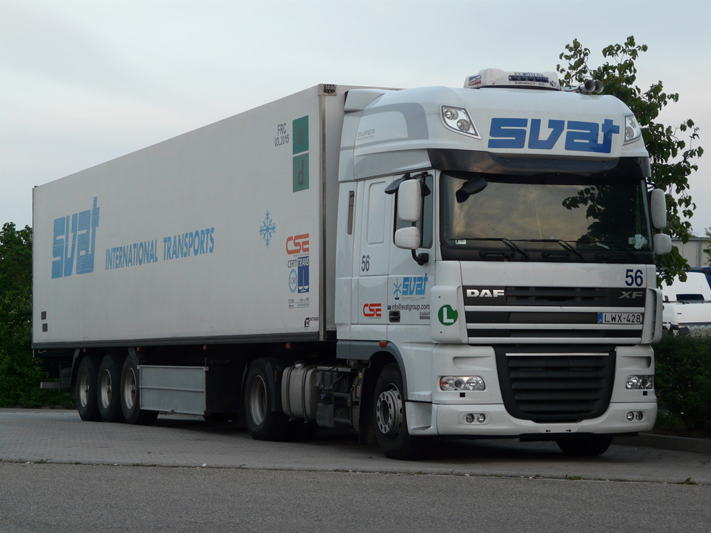 DAF XF 105.510 mit Kühlauflieger von "SVAT" aus Ungarn auf dem Rasthof Wörnitz, 27.05.2012