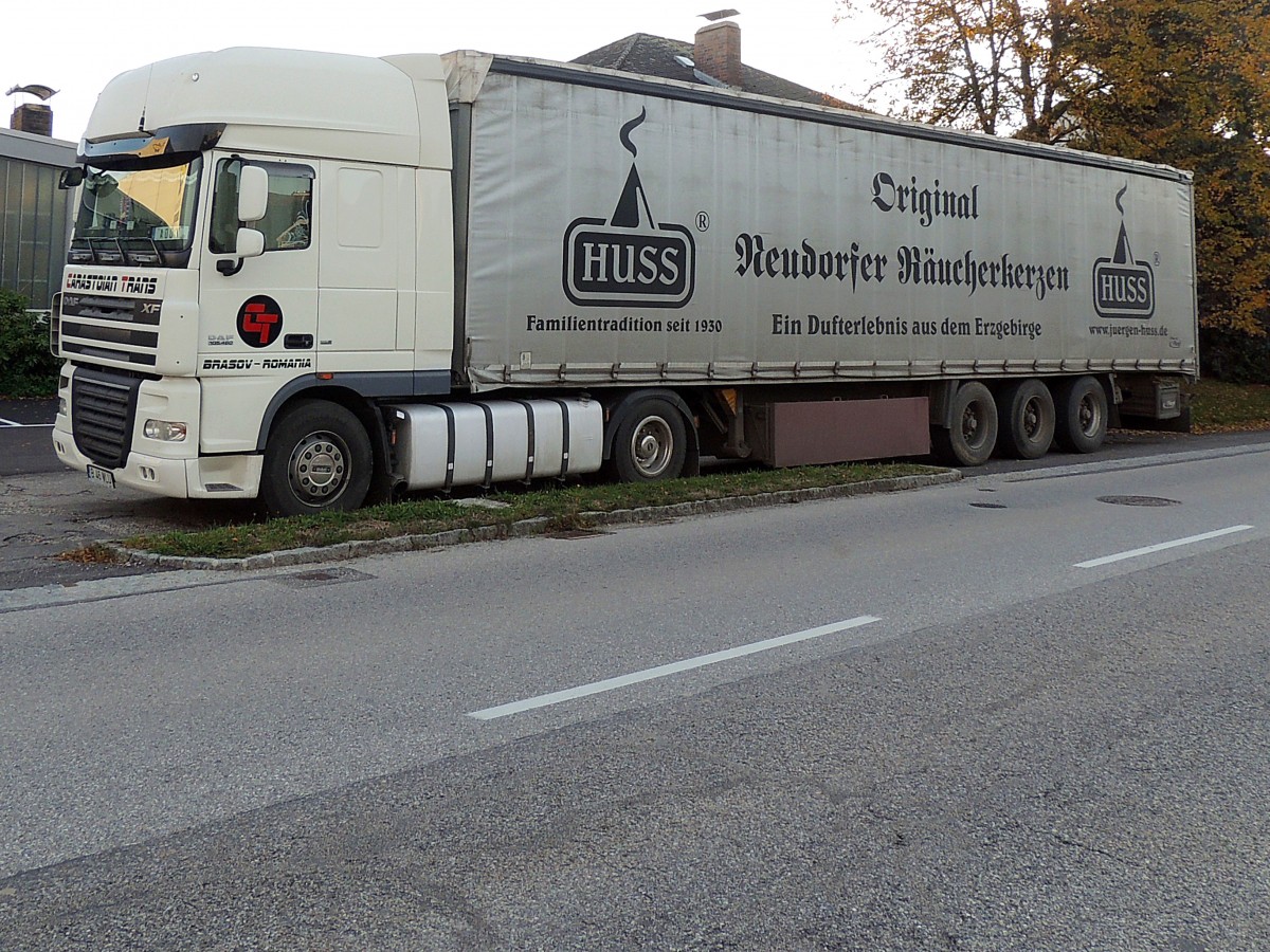 DAF XF105.460 von CARASTOIAN-Trans, ist am späten Nachmittag noch mit einem