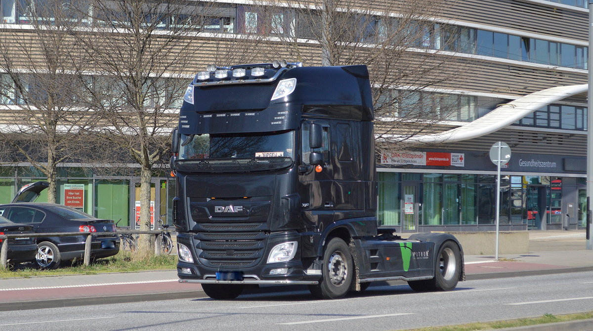 Eine DAF XF 530 Zugmaschine der Fa. VITHOR GmbH aus Werder (Havel) am 23.03.20 Brandenburg Hbf.