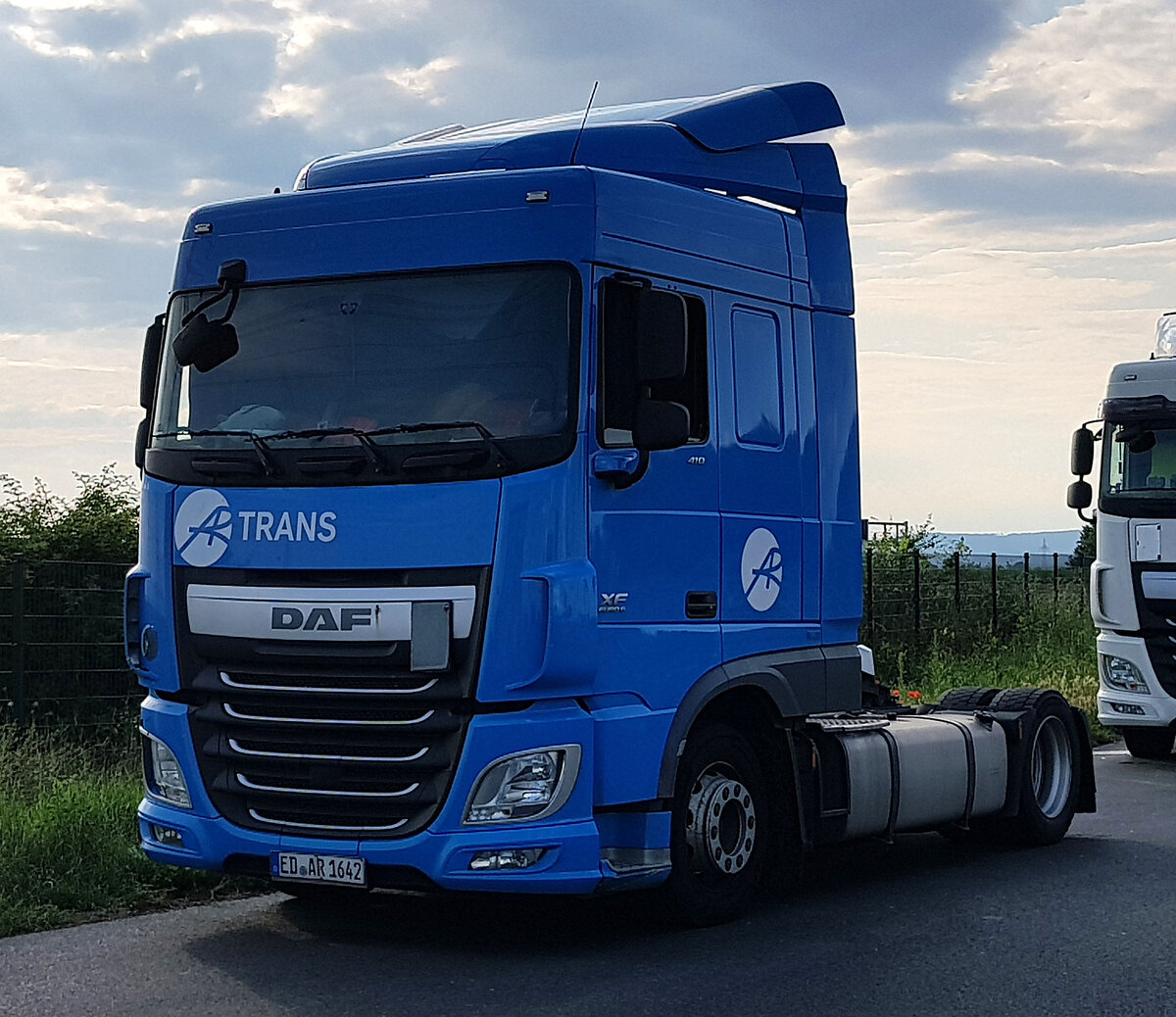 =DAF XF-Sattelzugmaschine von AR-Trans steht auf einem Parkplatz an der A 3 im Juli 2021