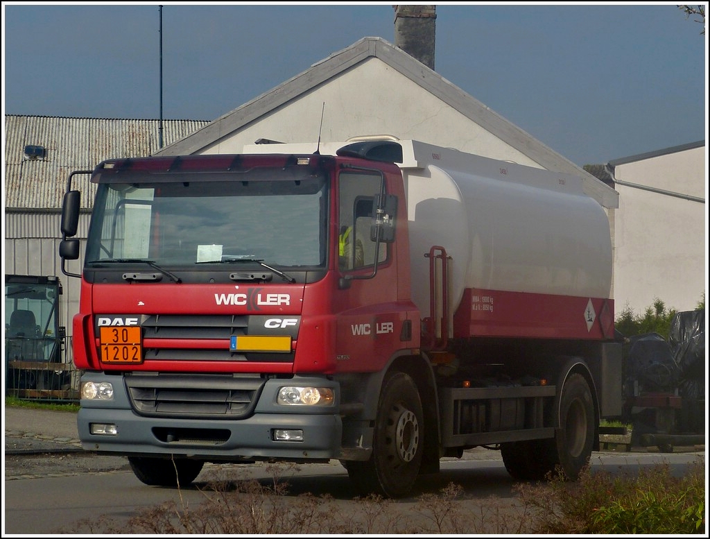 DAF CF mit Tankaufbau zur nächsten Baustelle unterwegs um die Baufahrzeuge mit Kraftstoff zu versorgen. 02.05.2013