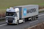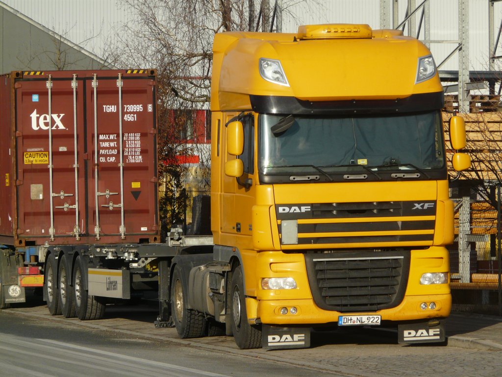 DAF XF 105 mit unbeladenem Container-Auflieger abgestellt im Nürnberger Hafengebiet, 15.01.2012