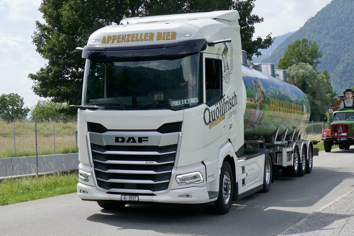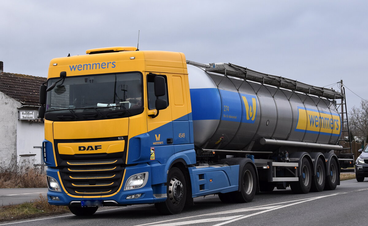 =DAF XF-Tanksattelzug von FRAMOS aus Spanien rastet auf einem Rastplatz südlich von Mailand, 09-2017