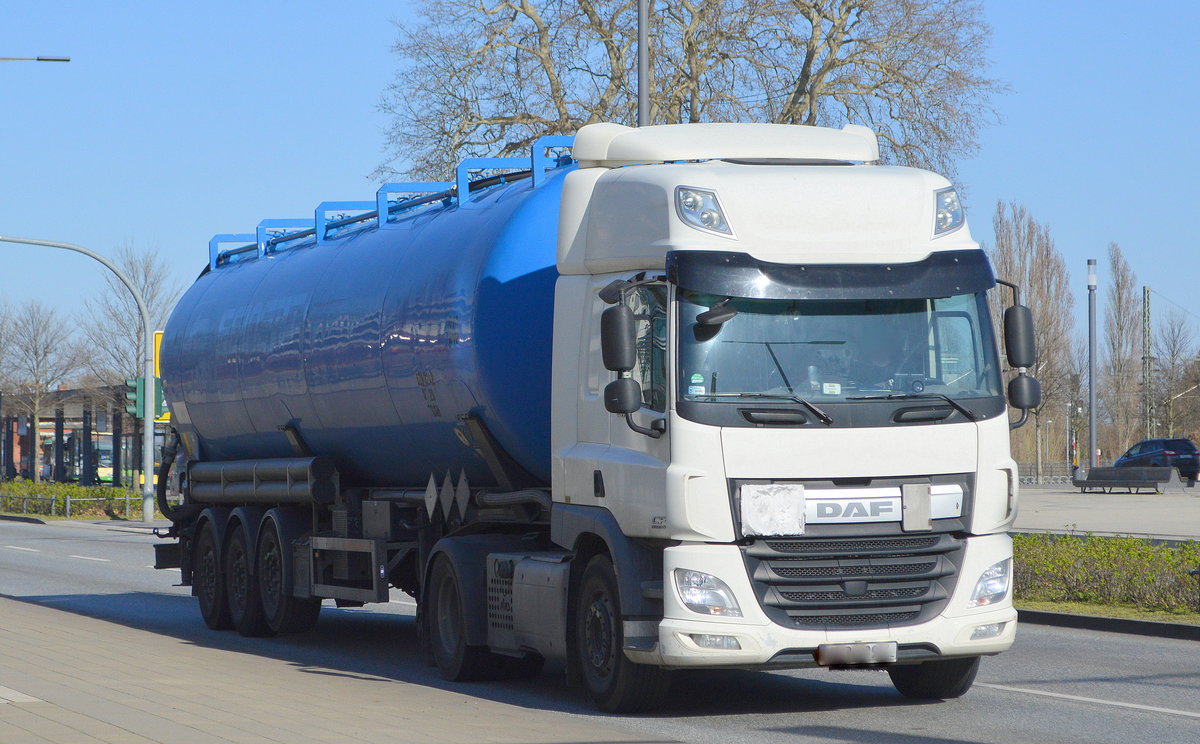 Polnischer Sattelzug mit Tankauflieger und DAF CF 440 EURO 5 Zugmaschine am 23.03.20 Brandenburg Hbf.