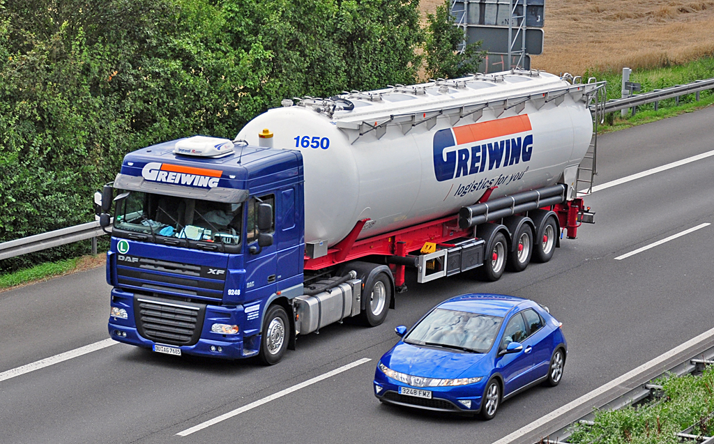 DAF XF "Greiwing" auf der A61 bei Rheinbach - 13.08.2010