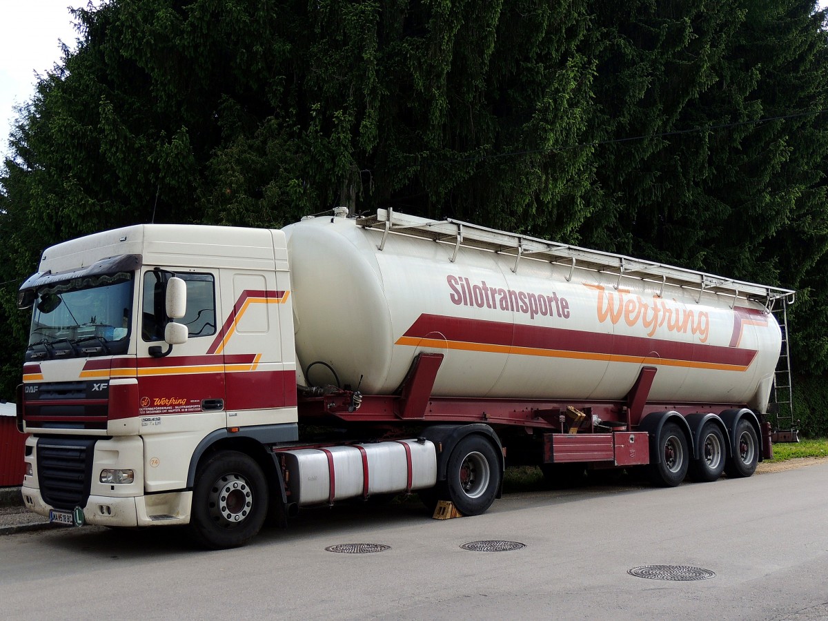 DAF XF 105.410 von Silotransporte Werfring, verbringt in Ried seine Wochenendruhe; 140525