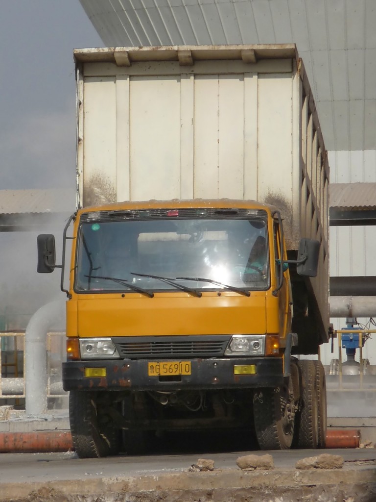 FAW-Kipper beim Abladen von Kalk, Shouguang, 14.11.10