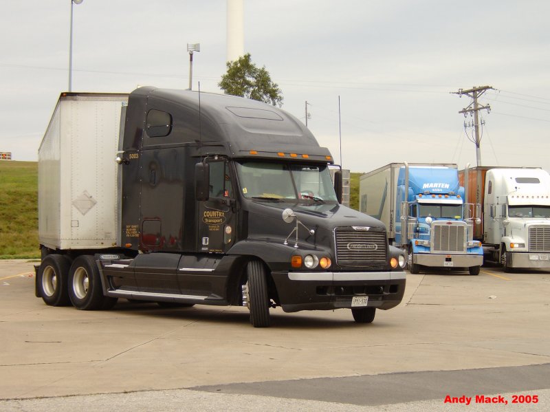 Ein schwarzer Freightliner Century Class parkt auf einem Rastplatz ein. (USA, 2005)
