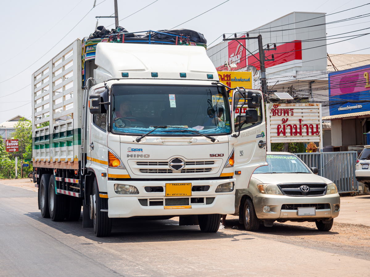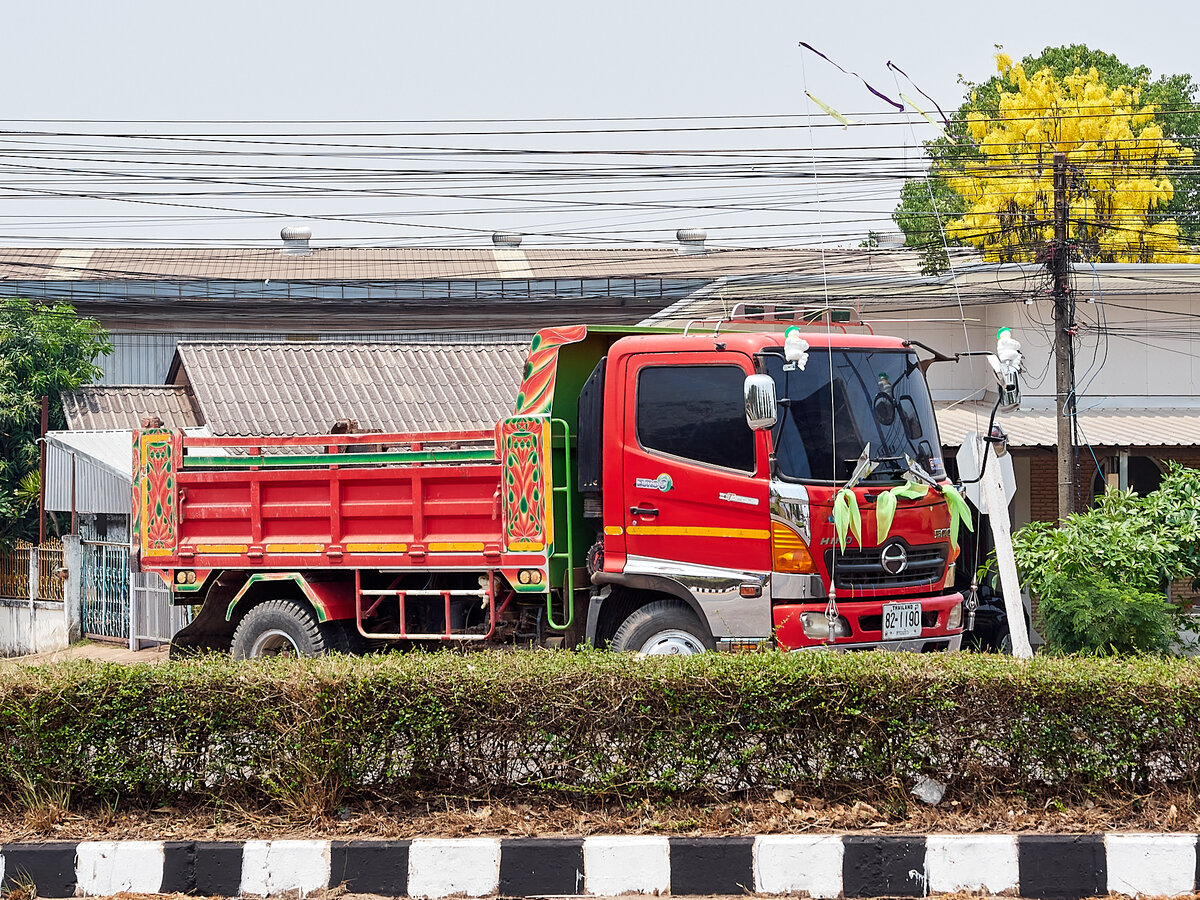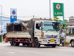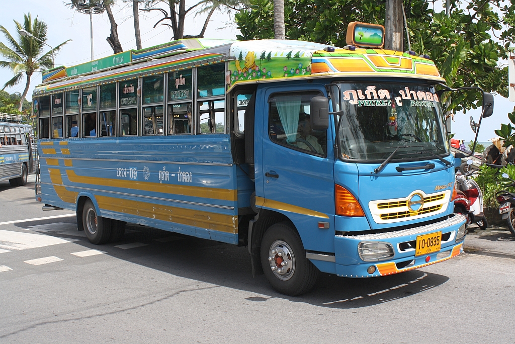 Zum Bus umgebauter LKW HINO 300 MEGA FC mit der Nr. 1814-09 der Linie Phuket-Patong am 05.Juni 2011 an der Endstelle in Patong.