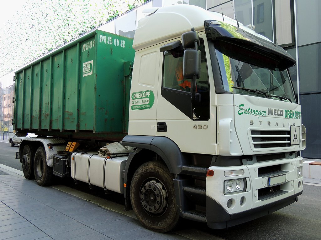 IVECO Stralis-430 hat in der Innenstadt von Koblenz zu tun; 120822