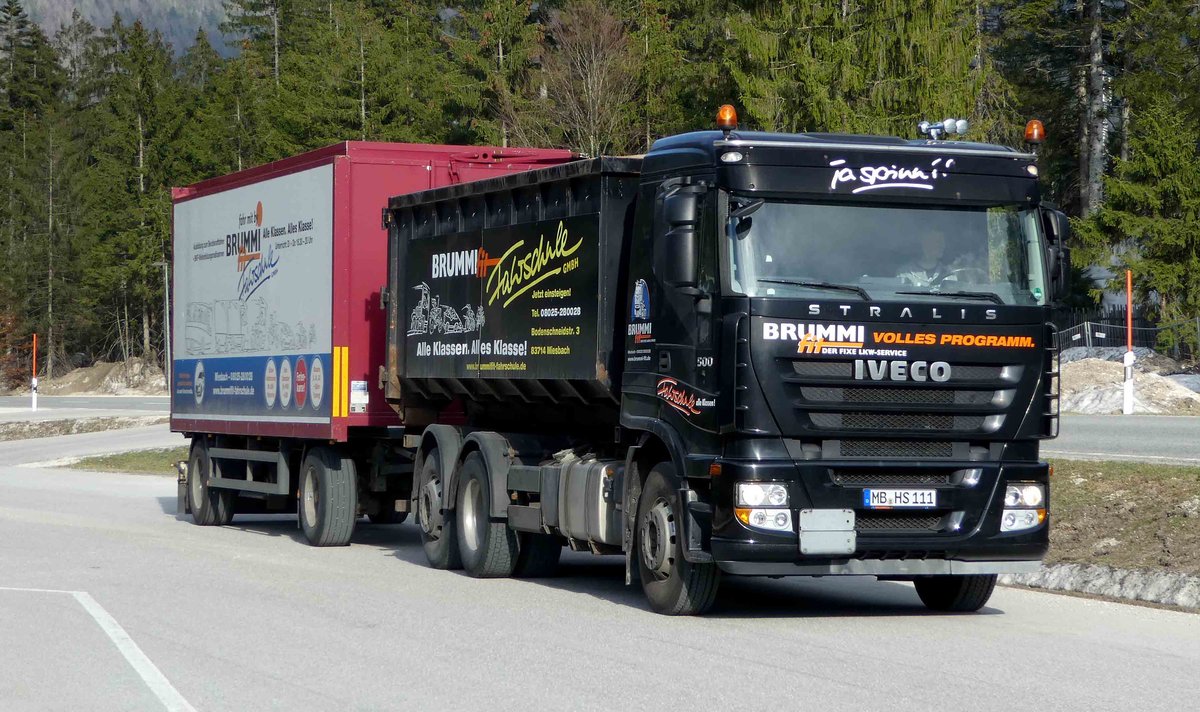 =Iveco Stralis 500 - Hängerzug der "brummifit-fahrschule" bei Rangierübungen in der Nähe von Ruhpolding, April 2019