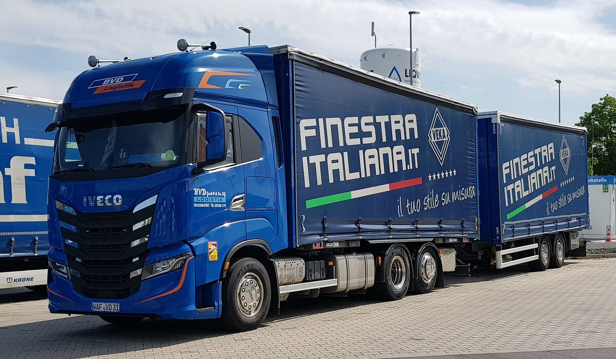 =Iveco-Hängerzug von BVD-Logistik rastet im Juni 2023 an der A 7
