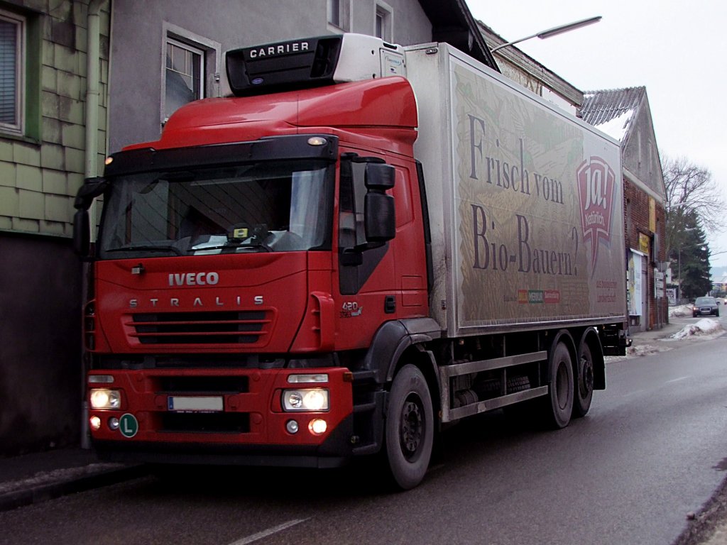 IVECO-STRALIS420 eilt im Zustelldienst mit BIO-Produkten  von Filiale zu Filiale;101223