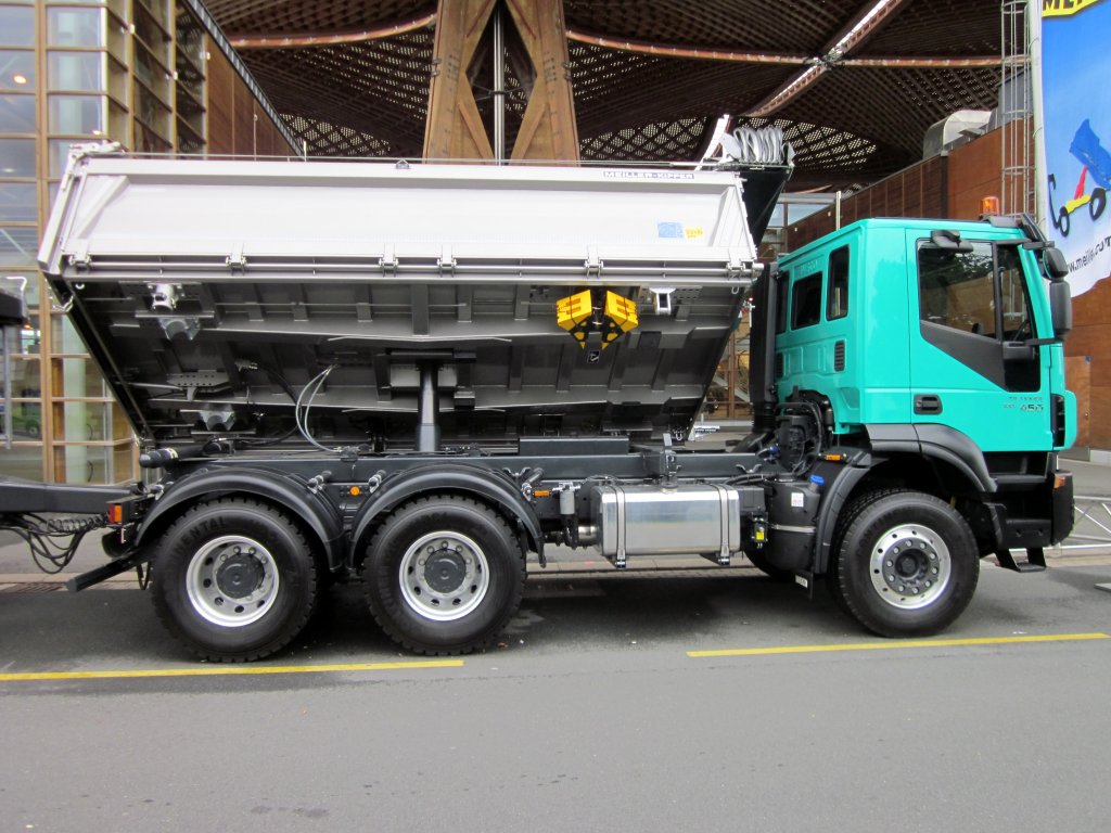 Iveco Trakker 450 mit Meiller Dreiseitenkipper am 27.09.2012 auf der IAA Nutzfahrzeuge in Hannover.