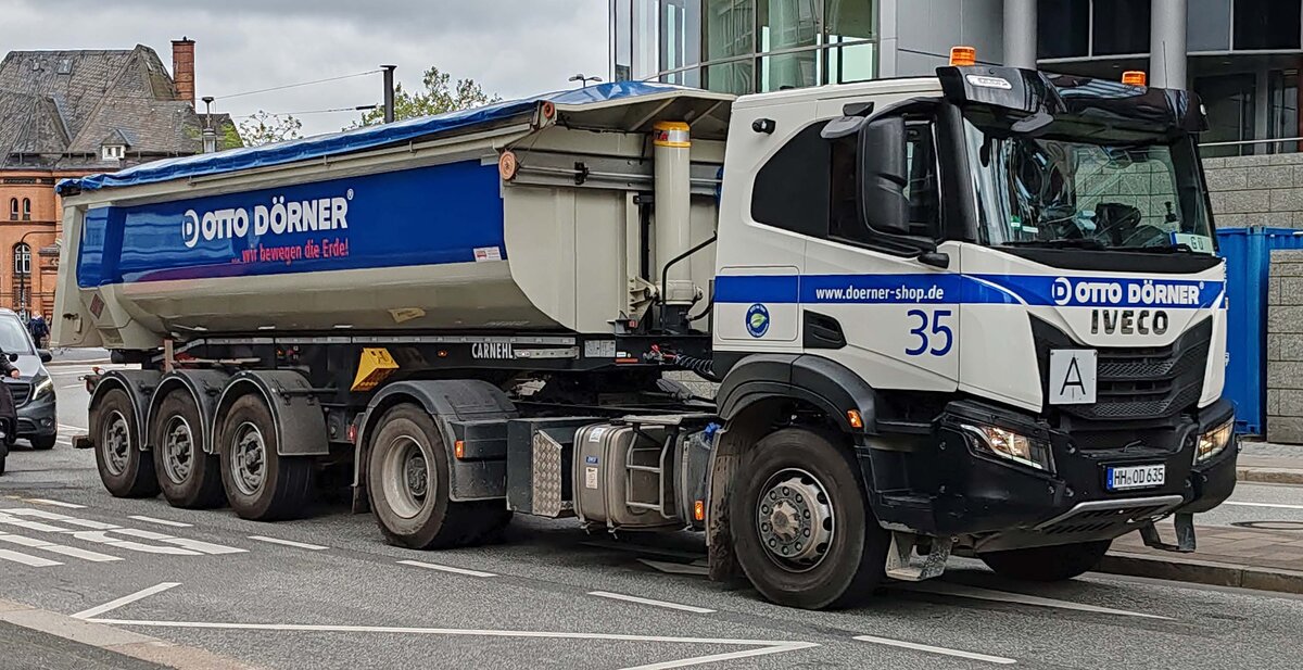 Sattelkipper mit IVECO STRALIS 460 E6 Zugmaschine der Fa. PKS Logistik GmbH am 07.11.19 Berlin karlshorst.