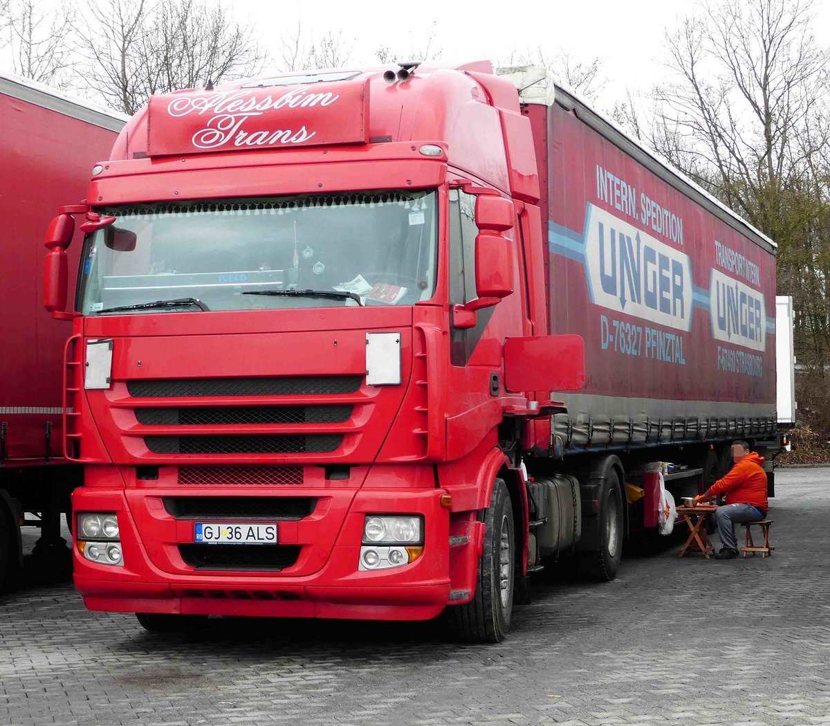 =Iveco-Sattelzug rastet an der A 7, Februar 2017