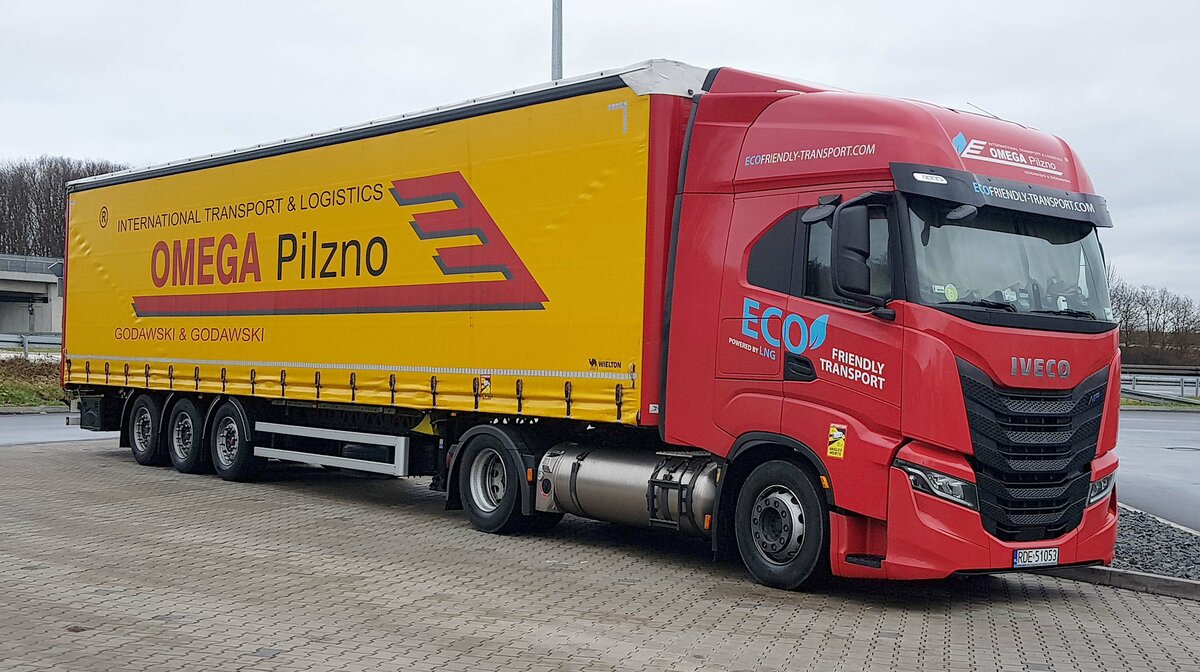 =Iveco-Sattelzug der Spedition OMEGA aus dem polnischen Pilzno rastet an der A 7 im Januar 2022