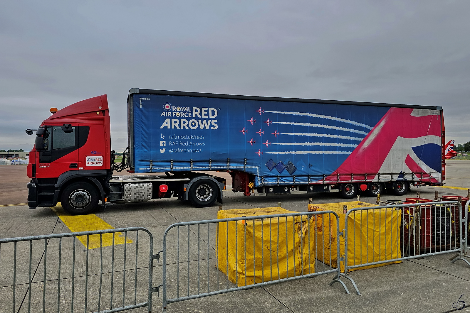 Dieser IVECO Stralis 400 wird für die Britische Kunstflugstaffel Red Arrows genutzt. (Fairford, Juli 2024)