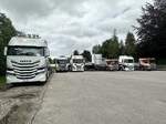 Ein Iveco S-Way, mehrere Scania und ein DAF der SDL AG die am 7.7.24 in Gutenburg parkiert sind.