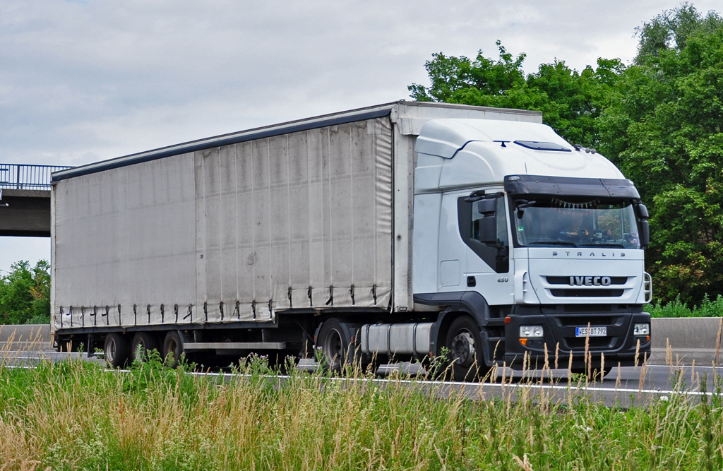 Iveco Stralis 450 mit Pritschenauflieger auf der A61 bei Heimerzheim - 05.07.2010