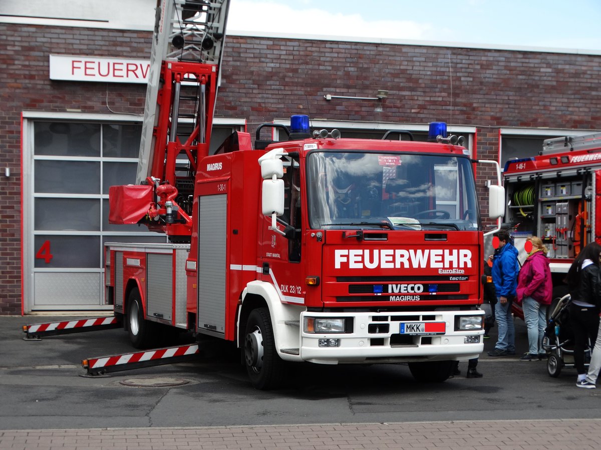 Feuerwehr Maintal IVECO/Magirus DLK 23/12 (Florian Maintal 1-30-1) am 15.05.16 beim Tag der Offenen Tür in Dörnigheim