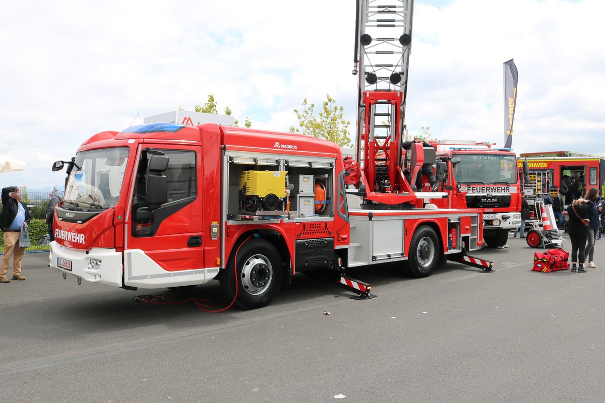 IVECO Magirus DLK als Niedrigbauweise am 18.05.19 auf der RettMobil in Fulda