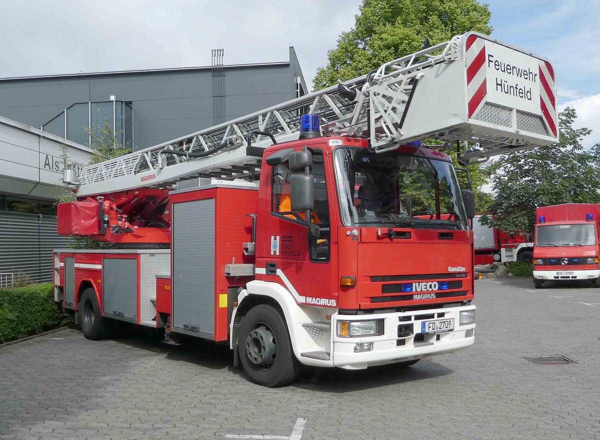 =Iveco tector als Drehleiterfahrzeug der Feuerwehr HÜNFELD ausgestellt beim Tag der offenen Tür im Juni 2019