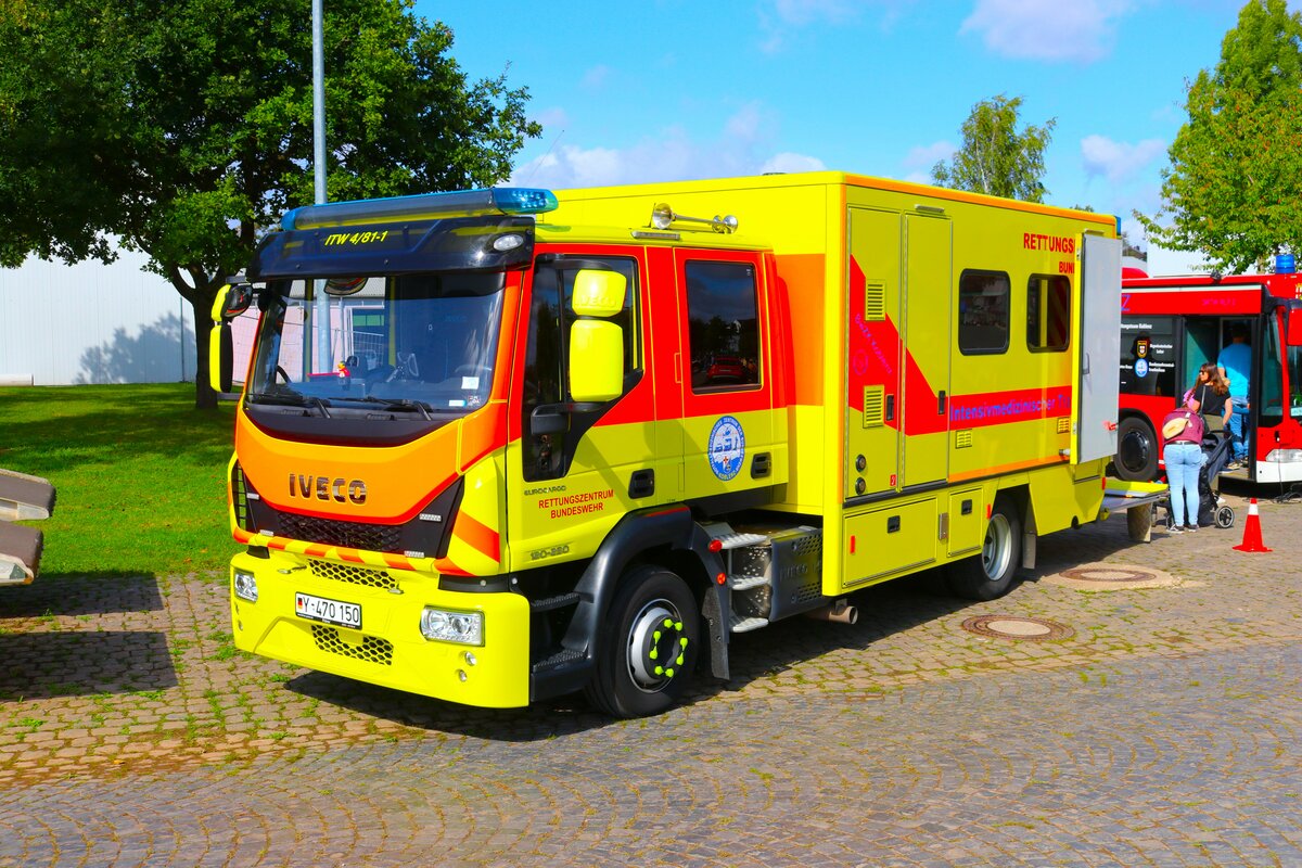 Notfallmedizinisches Zentrum der Bundeswehr Koblenz IVECO ITW am 23.09.23 beim Tag der offenen Tür von Christoph 23 zum 50 jährigen Jubiläum