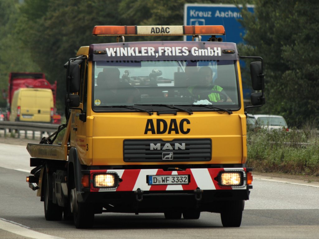 "Gelber Engel" mit MAN Abschlepper am 26.07.2011 auf der A4 kurz vor der Niederländischen Grenze.