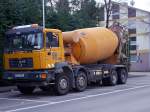 Ein MAN Betonmischer unterwegs in der Stadt Zug am 20.08.2010