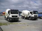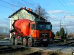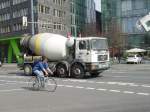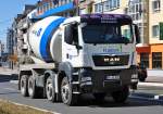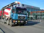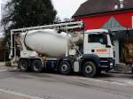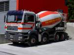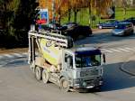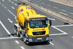 LKW MAN mit Betonmischeraufsatz von Holcim auf den Straßen von Hamburg unterwegs am 17.09.2013.