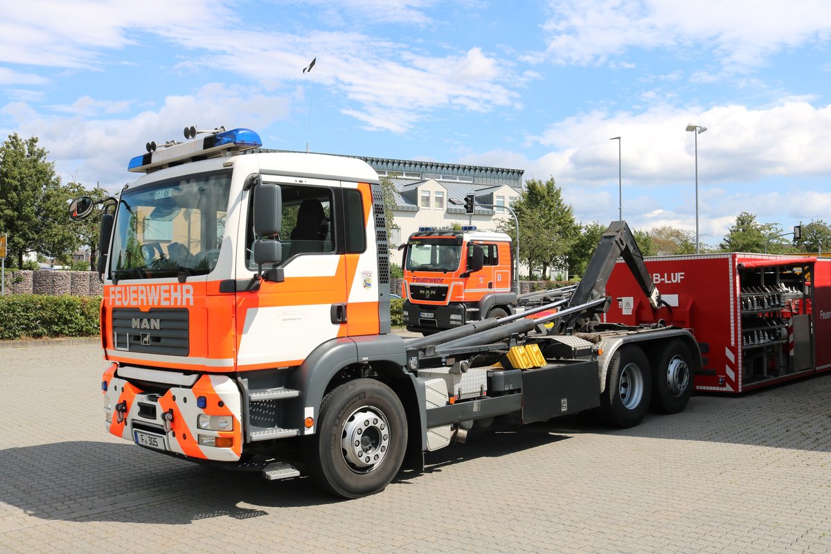 Berufsfeuerwehr Frankfurt MAN TGA WLF mit AB-LUF (Löschunterstützungsfahrzeug) am 18.08.19 beim Tag der offenen Tür der Feuerwehr Langenselbold