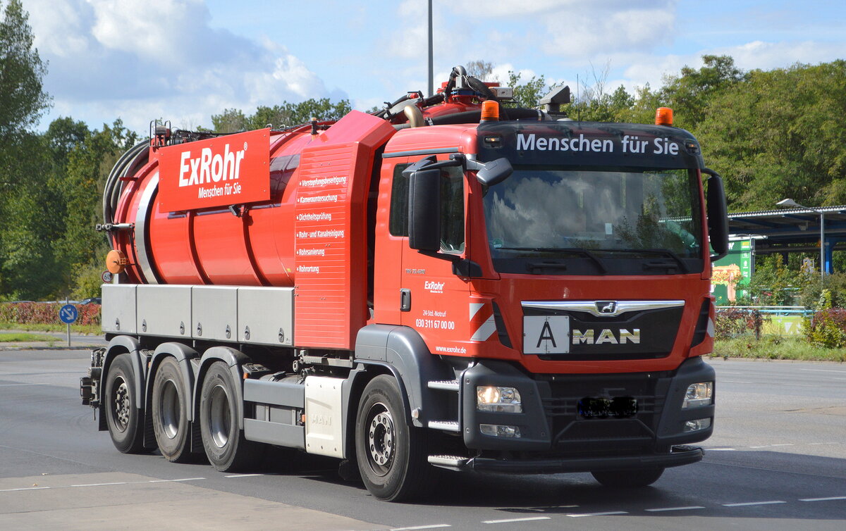 Firma Ex-Rohr GmbH mit einem MAN TGS 35.420 Abwasserspülfahrzeug am 26.09.22 Berlin Marzahn.