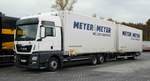 MAN Hängerzug, von Beton Weber, beladen mit Material für eine Baustelle. 12.2025