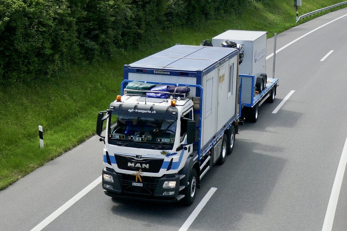 Ein MAN Hängerzug von Egli Transporte am 28.6.24 unterwegs zum Trucker Festival auf der A8 in Matten b. Interlaken.