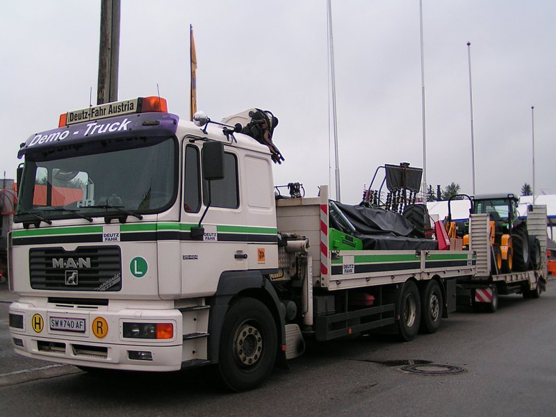 MAN_26.464"Demo-Truck" (Deutz-Fahr) bei der Abholung von Messeausstellungsstücken in Ried i.I.; 090914