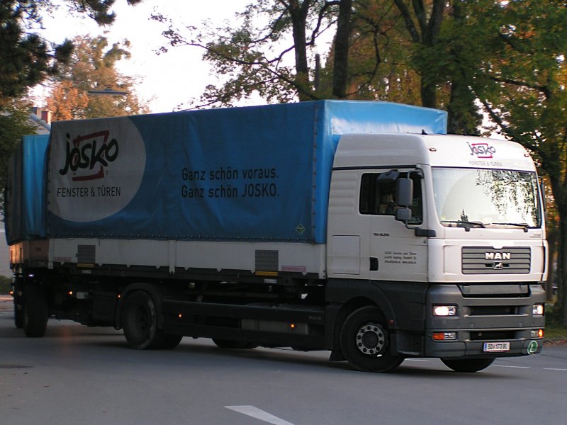 MAN_TGA18.360 befindet sich am Spätnachmittag bei der Durchfahrt im Stadtgebiet von Ried i.I.;091020