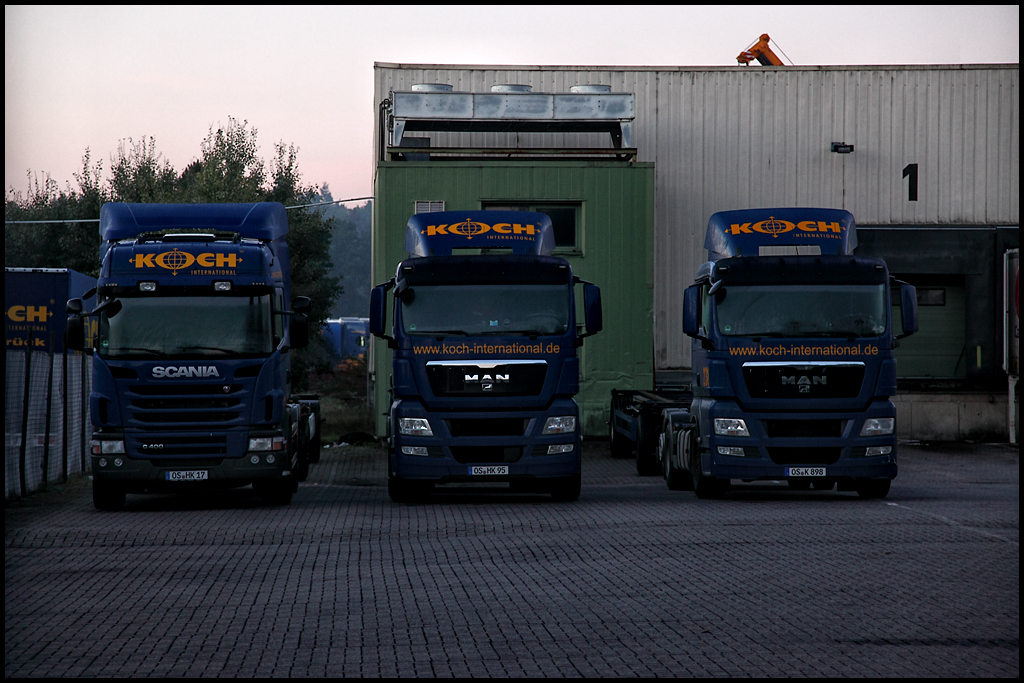 Durch den Zaun konnte ich einen SCANIA HIGHLINE G400 und zwei MAN TGS 26.400 von KOCH INTERNATIONAL auf den Chip bannen. (19.09.2010)