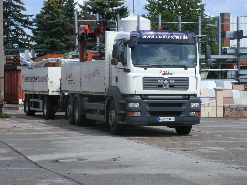 MAN-Hängerzug,am 24.Juni 2011,bei einem Baustoffhandel in Bergen/Rügen.