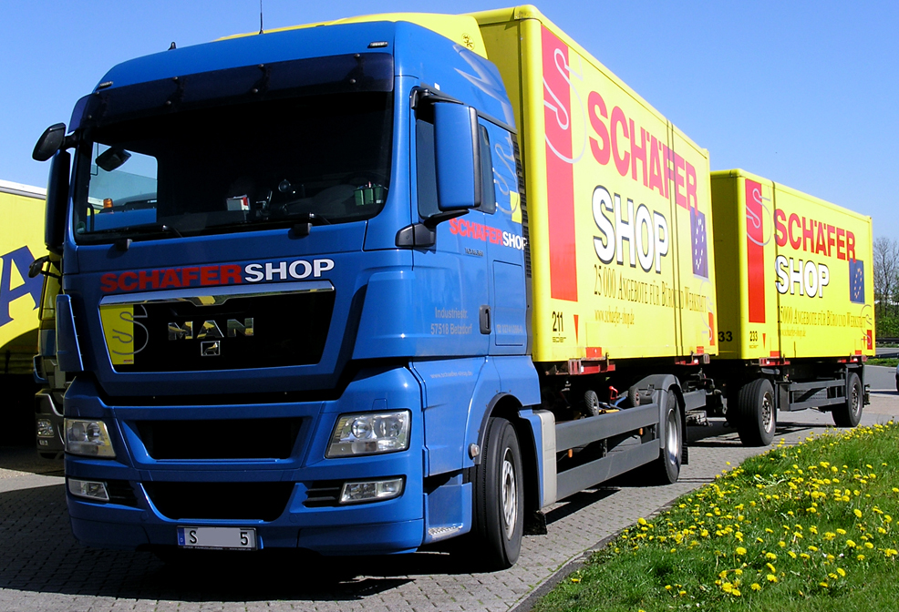 4.5.12/ MAN TGX 18.360 als Hängerzug vom Unternehmen Schäfershop im Sauerland gesehen..