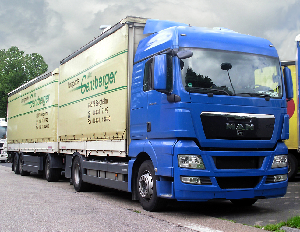 August 2012 / das Gespann besteht aus einem 3 - Achshänger , der von einem MAN TGX 18. mit 440 PS gezogen wird..