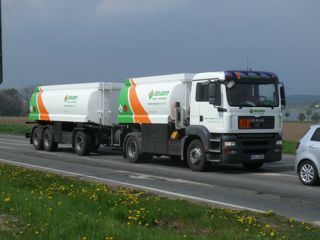 MAN-Tankhängerzug,am 08.Mai 2013,im Stau vor Bergen/Rügen.